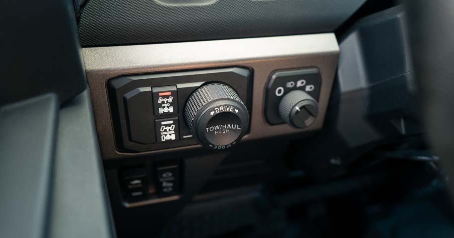 On-Demand True AWD/2WD/Turf/Ultra Turf, Drive Modes: Comfort, Standard, Sport, Tow/Haul, Equipped with creep in drive and reverse to help with low speed drivability for smoother power delivery